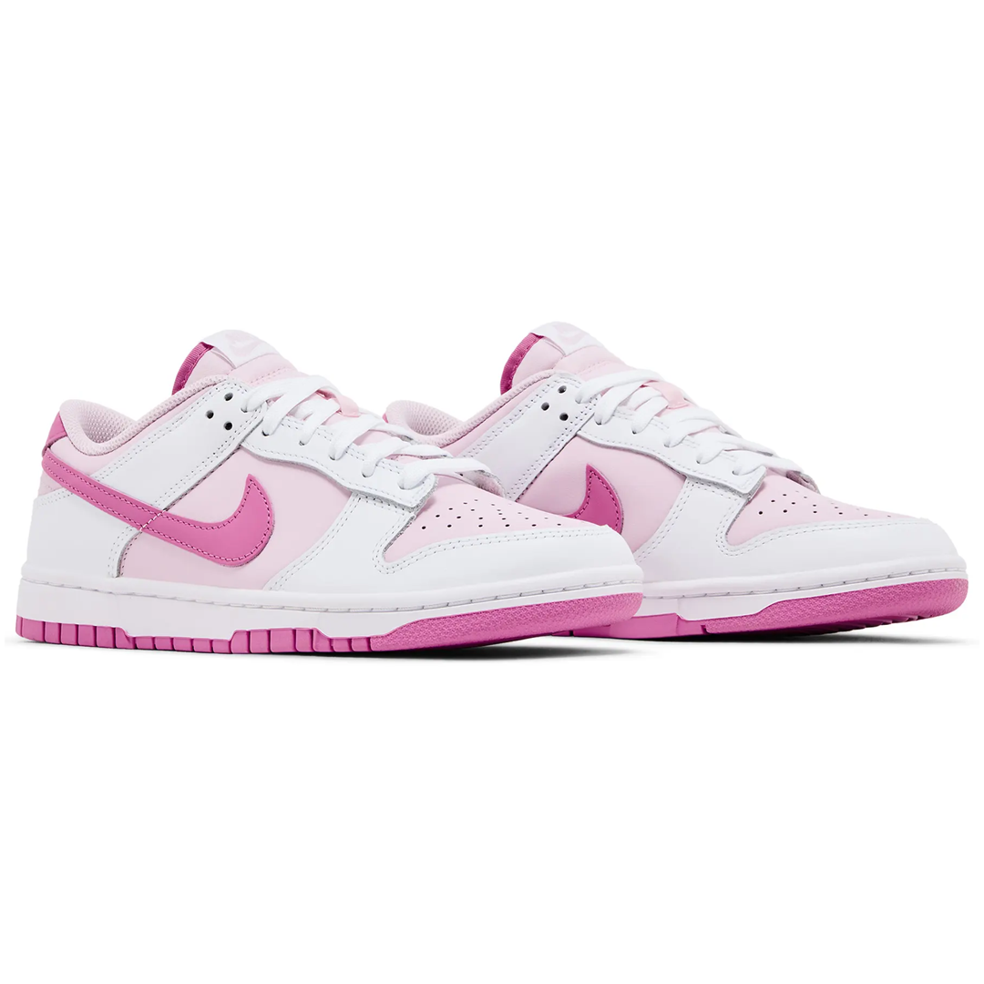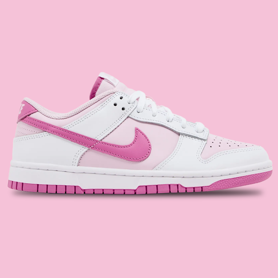 A soft pink statement. đź’—Â The Nike Dunk Low Pink Foam blends iconic '80s hoops heritage with dreamy pastel vibes. Designed just for women, this pair features crisp white leather underlays with smooth Pink Foam overlays that add the perfect touch of sweetness. The low-cut silhouette keeps it classic and wearable with everything from cargos to a mini skirt.