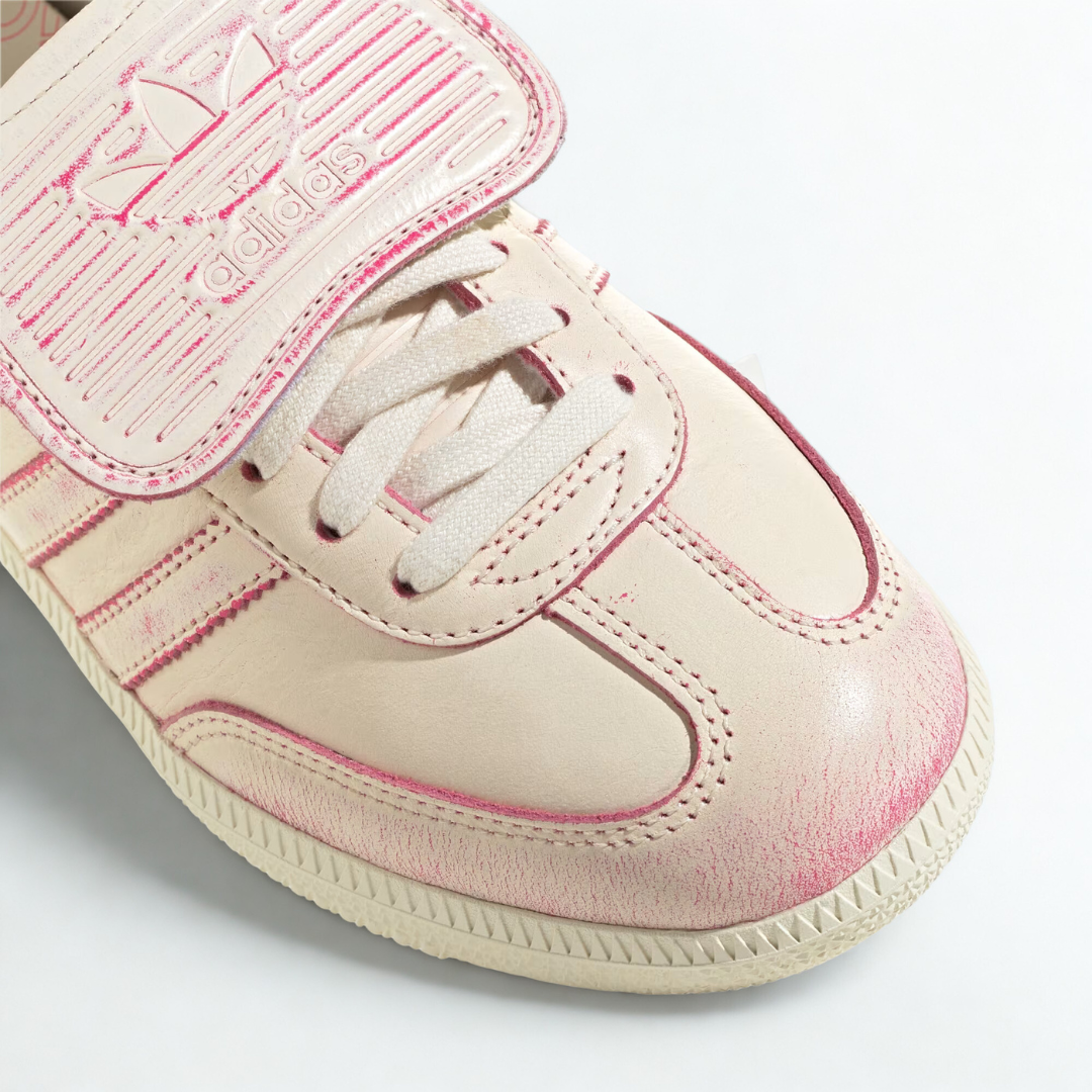 A classic, but make it pink. The adidas Samba LT from the Distressed Pack takes the iconic Samba silhouette and gives it a fresh, fashion-forward twist. Designed in a soft cream white base with hand-distressed pink detailing, these sneakers deliver that perfectly worn-in, vintage-inspired look everyone’s obsessed with. Signature stitching, gold “SAMBA” branding, and the extended tongue nod to the OG design, while the subtle pops of pink keep things playful and feminine. Lightweight, easy to style, and effortlessly cool—these are the Sambas you’ll reach for with every outfit, from cargos to cozy sweats to your cutest weekend fits.