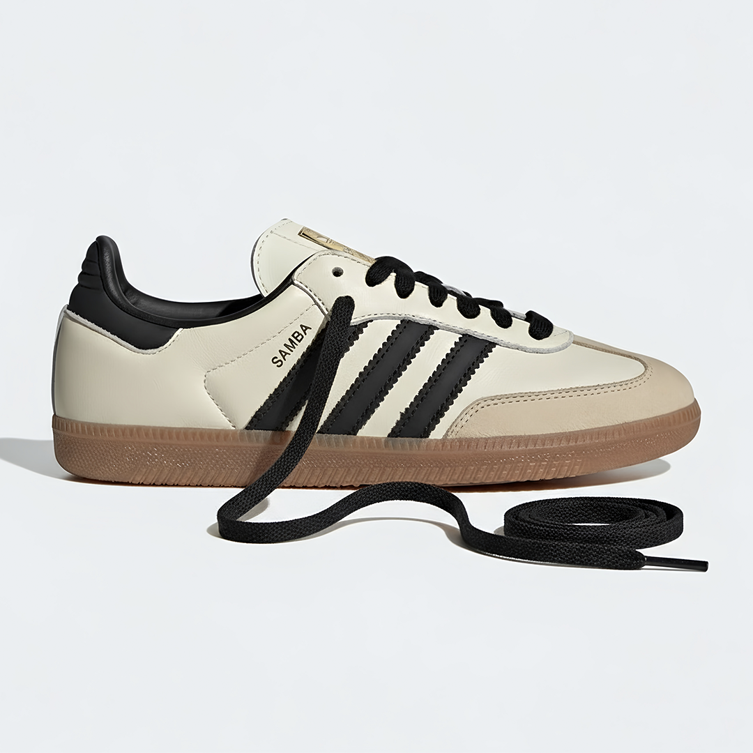 The adidas Samba OG Cream White Sand Strata Women’s is a timeless icon refreshed with soft, neutral tones that go with everything. Built on decades of sneaker heritage, this pair blends smooth cream leather with a sand suede toe cap and black 3-Stripes for that signature Samba edge. A gum rubber sole keeps the vintage feel alive while delivering everyday comfort and grip.