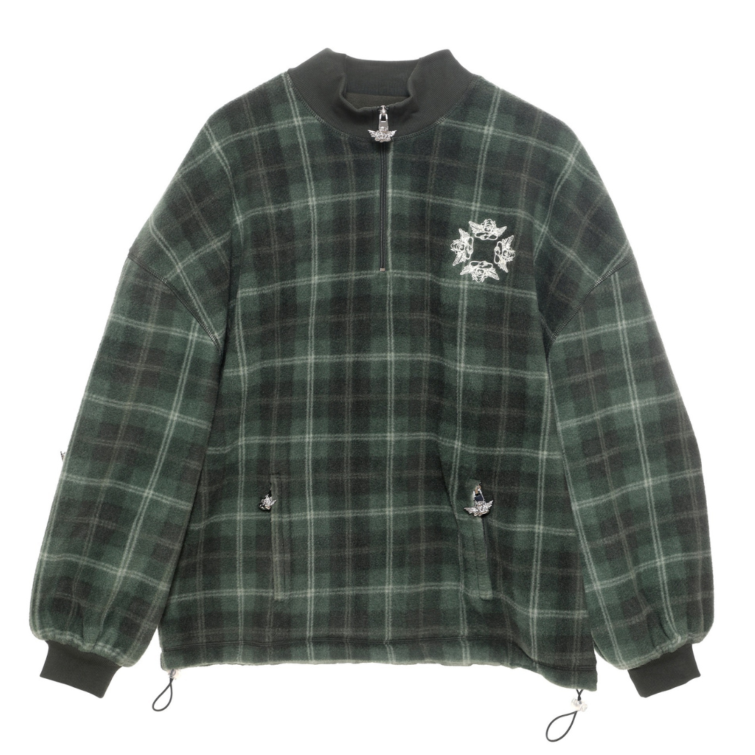 The Heavenly Room Service Fleece is your go-to for cozy travel days and off-duty style. Featuring a dark green plaid base and a relaxed, oversized fit, this pullover blends nostalgic comfort with Boys Lie’s signature edge. The back showcases the iconic “Butter Me Up!” heart waffle graphic, while cherub embroidery and silver hardware details add a touch of playful luxury.