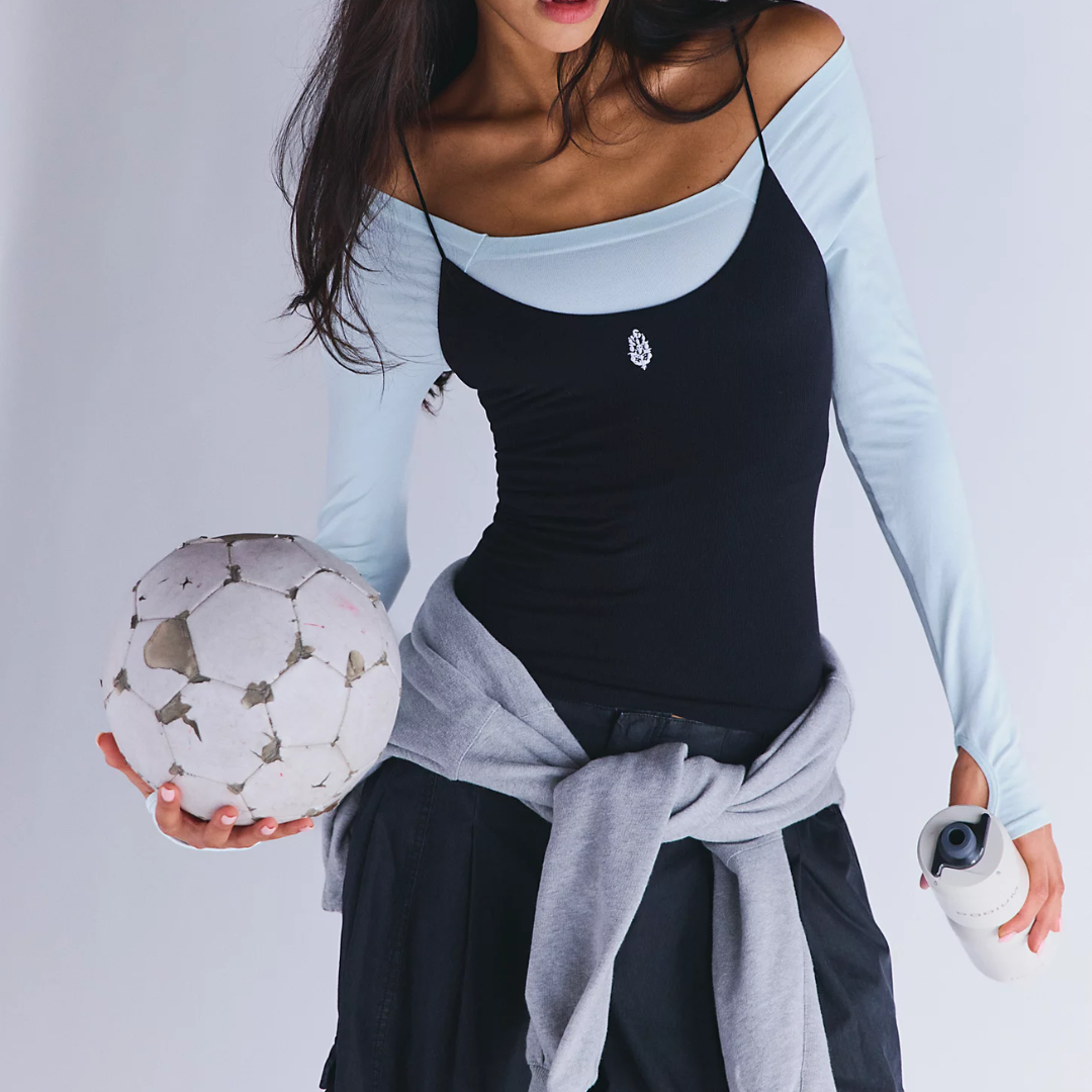 The soft, stretchy fabric moves with you, making it perfect for layering or wearing on its own. Finished with the signature FP Movement logo at the center, it’s the kind of staple you’ll reach for on repeat.