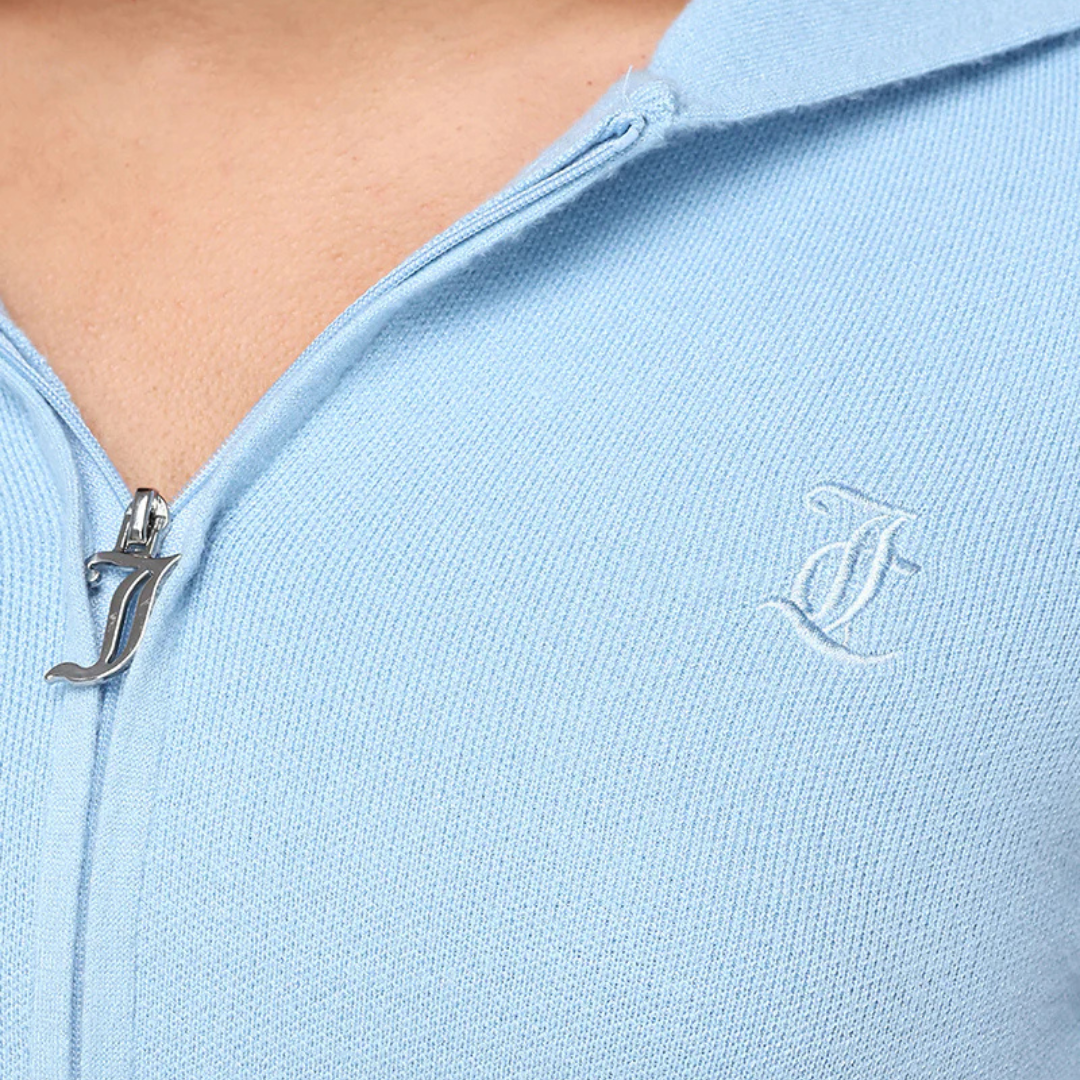 Icy tones, iconic sparkle. The Big Bling Knit Hoodie in Frosted brings that fresh Juicy attitude with a soft, luxe feel. Crafted from a sleek stretch knit that flatters every shape, this cropped zip-up features crystal Juicy detailing across the back, tonal embroidery on the chest, and the signature “J” zipper pull. The baby blue hue adds a cool-girl edge to your cozy days — pair it with the matching Big Bling Knit Pants for the full Frosted moment.