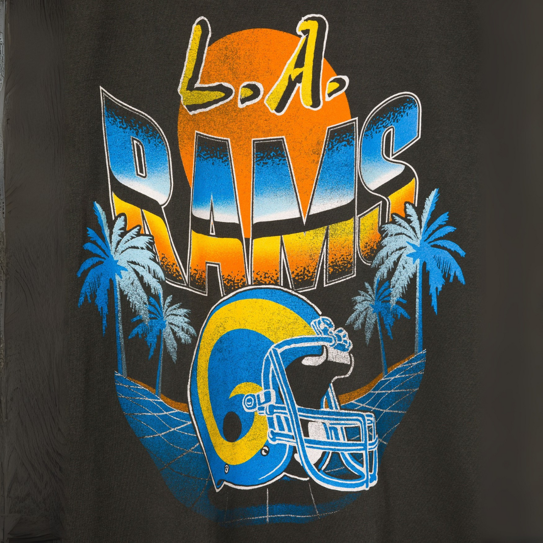 Bring West Coast game-day vibes to your wardrobe with the Junk Food – Los Angeles Vintage Tee. This officially licensed NFL t-shirt features bold, sunset-inspired Los Angeles Rams graphics with palm tree accents and a retro helmet design for a true throwback feel. The distressed print gives it a lived-in look, while the soft, breathable cotton offers all-day comfort. With its relaxed fit, it pairs effortlessly with jeans, shorts, or joggers—perfect for cheering at SoFi Stadium, hitting a tailgate, or rocking casual streetwear. Show your Rams pride in style with a tee that channels classic L.A. energy and timeless football spirit.
