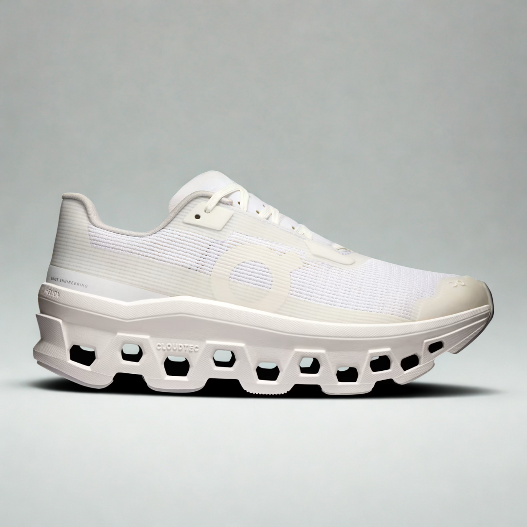 Clean, bold, and undeniably fresh—the On Running Cloudmonster Void All White sets the standard for max-cushioned minimalism. Featuring CloudTec® pods stacked high for supreme comfort, this shoe offers plush landings with an energetic rebound. The crisp all-white palette makes it a standout staple, pairing effortlessly with both activewear and elevated street style. Lightweight yet powerful, it’s crafted with Helion™ superfoam and an advanced Speedboard® for explosive energy return. Whether running, walking, or styling for a monochrome look, the Cloudmonster Void is built to perform and designed to impress with every step.